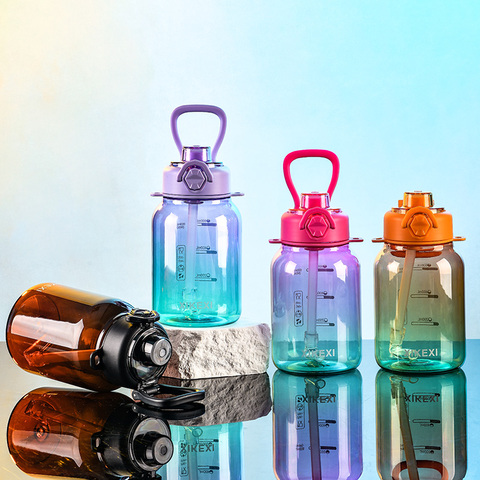 XIKEXI Trendy Gradient Gran capacidad Galón Hombres al aire libre Conveniente botella deportiva motivacional
