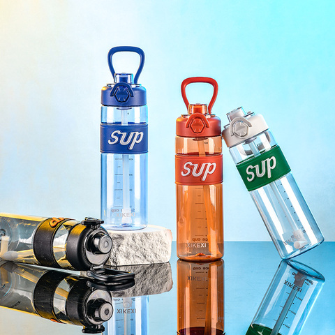 Gran oferta 2023 SUP 700/900ml, botella de agua esmerilada portátil de Color degradado, taza de agua deportiva de plástico, tapa emergente a prueba de hojas